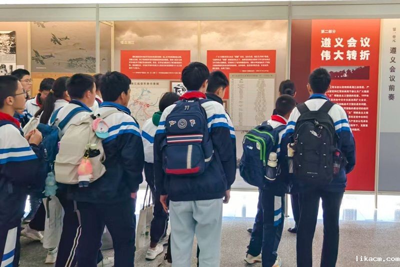 从“战略转移开始长征”中红军告别苏区的毅然出发,到“遵义会议伟大转折”中挽救革命的关键抉择;从“四渡赤水出奇制胜”中灵活机动的军事智慧,到“勇往直前走向胜利”中征服雪山草地的坚韧不拔,再到“遵义会议精神永存”中对革命精神的深刻凝练,详实的文献资料、珍贵的历史图片,让同学们仿佛置身于那个风雨如晦的革命年代。同学们不时驻足凝视,认真聆听讲解,深刻体会红军战士不畏艰险、勇往直前的革命情怀。