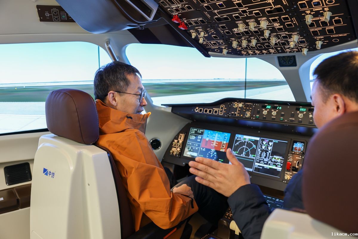 (翁铁慧同志和郑泉水院士分别试驾体验C919模拟驾驶舱)