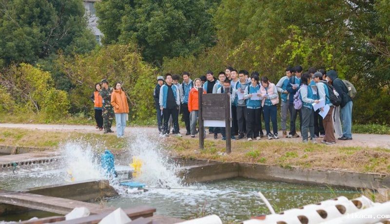 一组同学走向广袤田野,探访中洪村开太鱼生态农场。科技赋能下的“鱼菜共生”“循环水产”等生态养殖模式,绘就了一幅现代农业与自然和谐共生的绿色画卷。