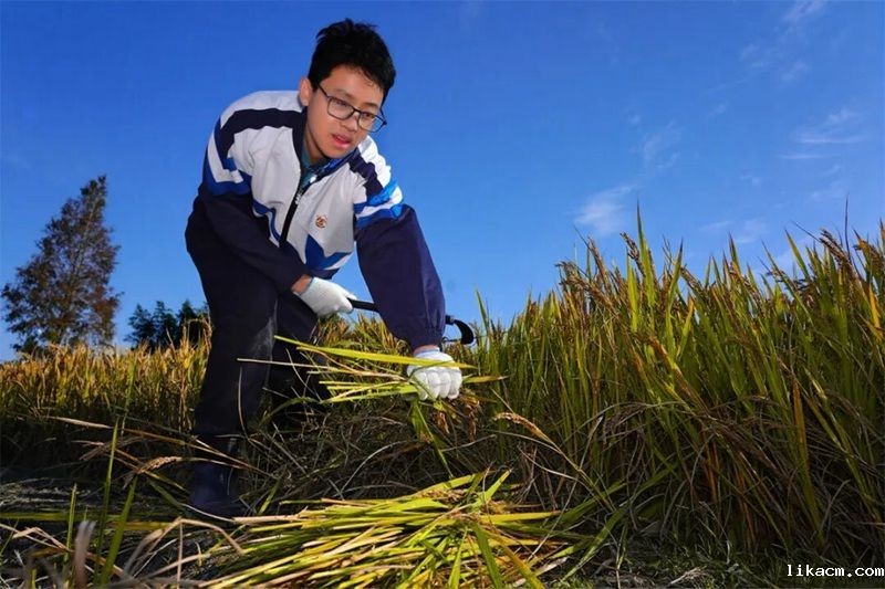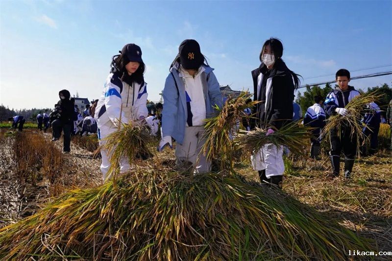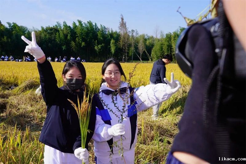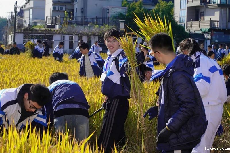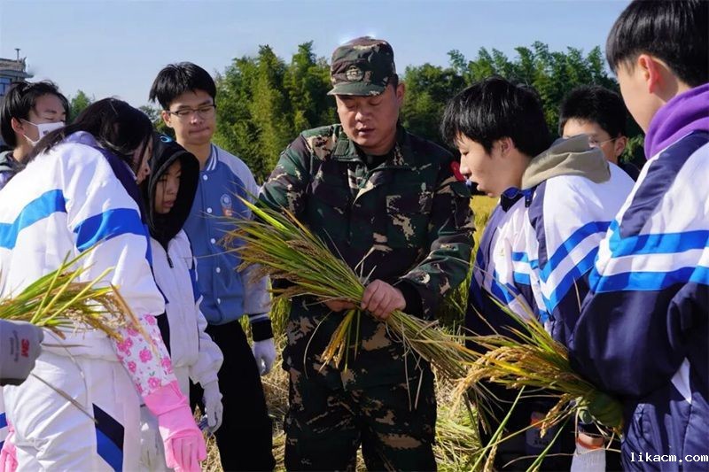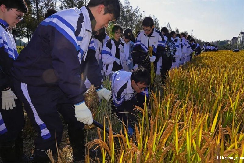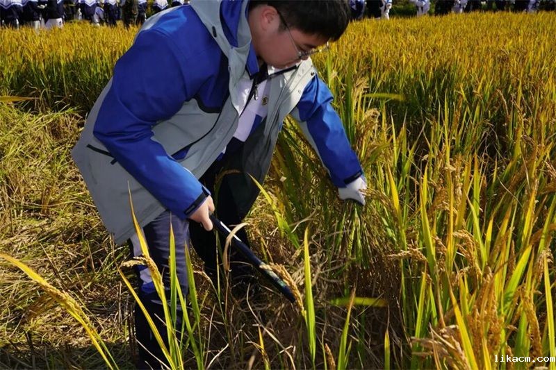 一批同学们拿上专业农具踏入铺展如金的稻田间,割刀利落地划过根基,饱满的稻穗便带着阳光的气息簌簌入怀。在教官及专业老师的悉心指导下,同学们亲身实践了脱谷、磨米过程。食堂师傅随即用各班的劳动成果蒸制成软糯香甜的米糕,让同学们第一时间品尝到了亲手收获的甘甜,切身体悟“一粥一饭,当思来处不易”的深刻内涵。