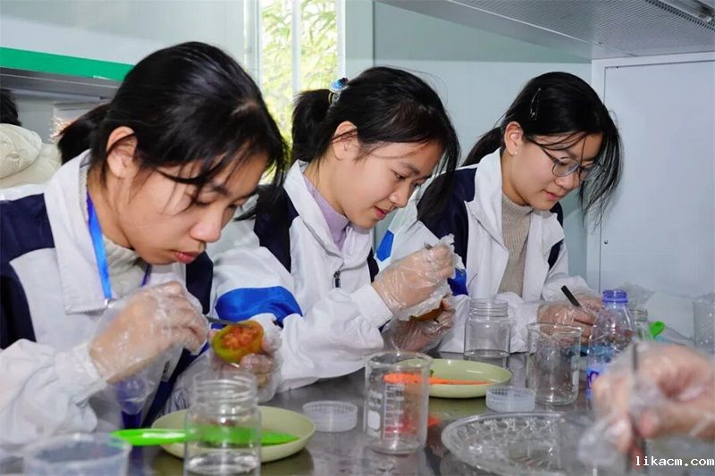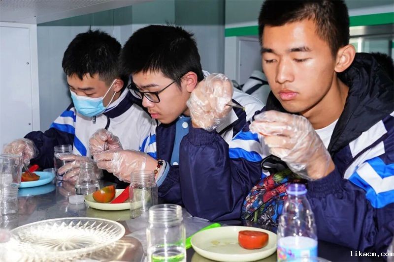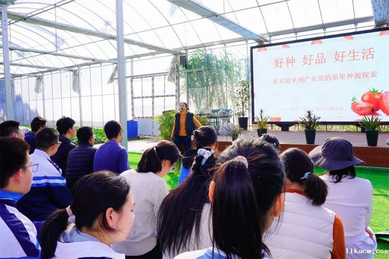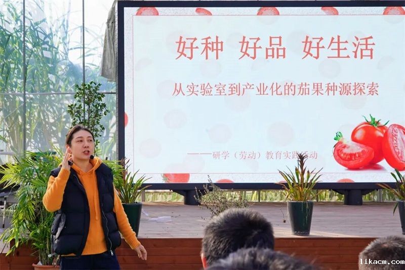 与此同时,另一批同学在番茄研发中心,从“专家工作室”、“田间大课堂”、“农场实验室”、“田头果茶吧”,四个板块探索“好种-好品-好生活”的现代农业逻辑。同学们在专家工作室中了解番茄种源开发,现状解读;田间大课堂上学习改良种源,嫁接幼苗;农场实验室中,取种制种,学习解刨种源;最后在田头果茶吧环节,品尝果茶,分享这节课的收获体会。