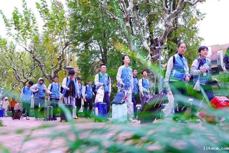 11月17日清晨,同学们于学校东门集结登车,奔赴青少年实践活动金山基地。