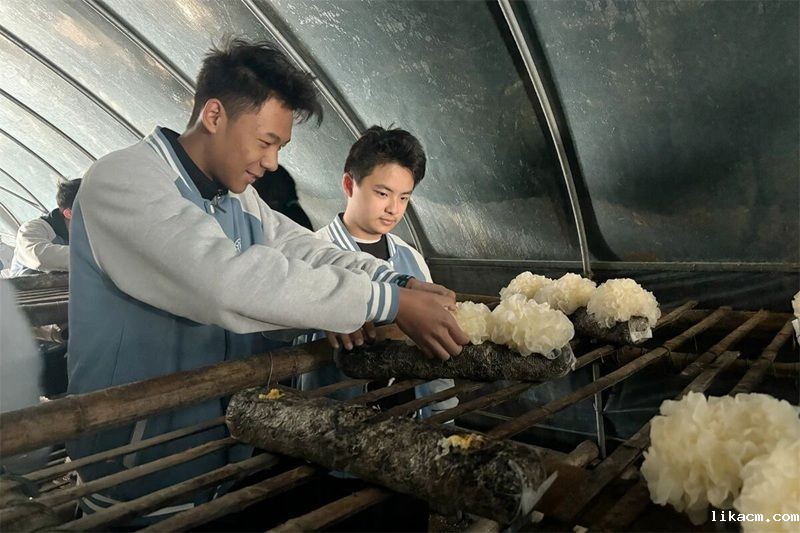 与此同时,另一批同学至金塘农业,参观现代化科技大棚,手工制作艾草香丸手串。在现代科技大棚同学们了解啤酒花种植、水循环利用、巡检机器人及生物防制等技术,感受现代化科技在农业领域的无限可能。他们还在金塘农业基地探寻“幽幽国粹草药香”,进行艾草香丸手串的制作,传承中华传统文化瑰宝。