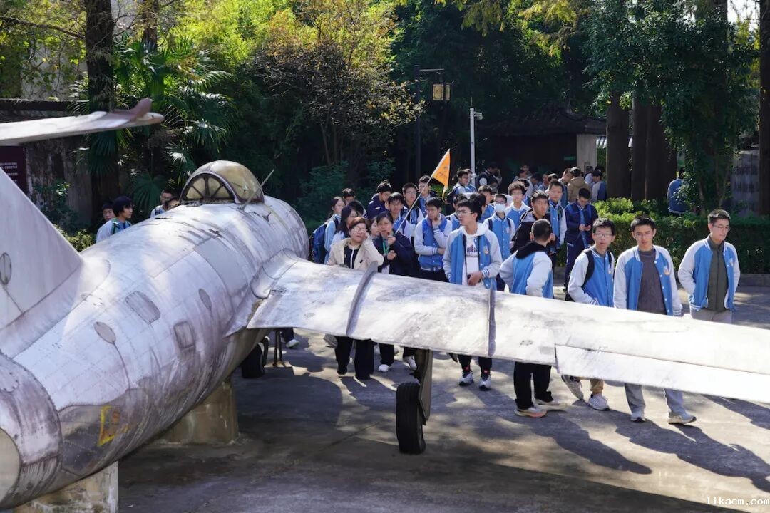 另一组同学踏入枫泾古镇,沿着革命印记,穿行于青石巷陌。弹痕墙上,斑驳的弹孔是烽火岁月无声的见证;火政会旧址中,救亡图存的呐喊仿佛犹在耳畔;人民公社内,新中国第一代战鹰——米格15静驻一方,虽已停翼,却凝结着人民炽热的家国情怀;像章馆中,一枚枚徽章熠熠生辉,串联起了一代人的集体记忆与理想之光。