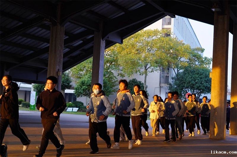 清晨的营地,伴随着第一缕阳光,同学们准时集合参加升旗与早锻炼,在晨跑中唤醒活力,锤炼意志。