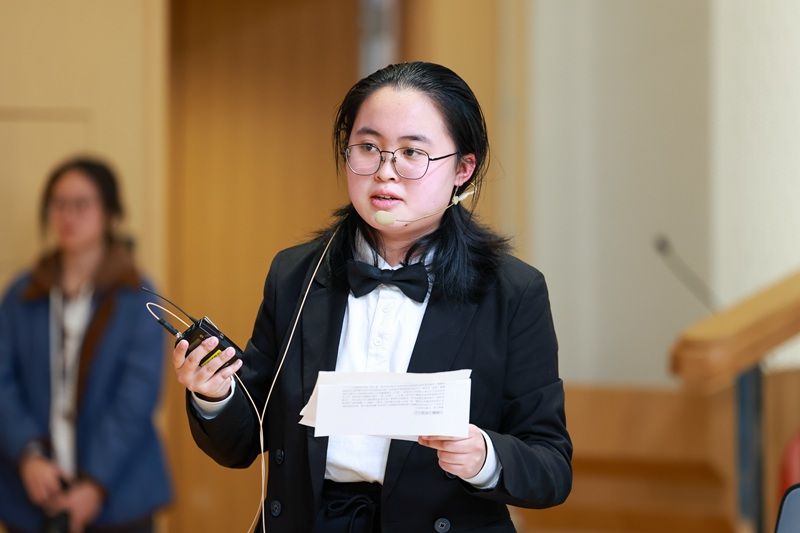 比赛延续独特的双语赛制,辩手们在中英双语间自如切换,完成立论、质询与自由辩论。辩手们逻辑递进、攻防紧密,双语表达自然切换,展现出扎实语言能力与成熟思辨技巧。