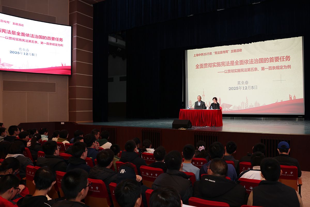 为深入学习宣传贯彻习近平法治思想,落实2025年宪法宣传周的主题精神,2025年12月5日,我校特邀现任上海市政府参事室党组书记、主任的莫负春老师在taptap下载安装官方正版大礼堂开展以《全面贯彻实施宪法是全面依法治国的首要任务》为主题的专题报告,旨在带领师生解锁宪法深层内涵,明晰青年与法治的时代联结,为青春成长筑牢法治根基。