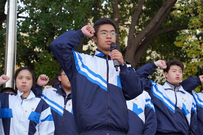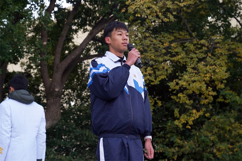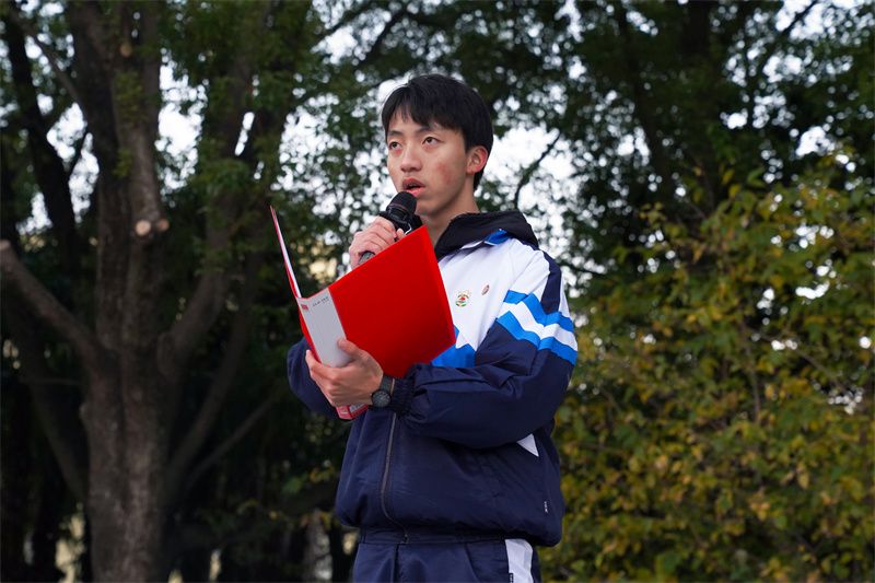 宣誓结束后,新团员代表、高三(3)班乐澄毅同学发表入团感言。他表示,对高三学子而言,入团不仅是青春的光荣,更是冲刺路上的责任。“共青团员”的身份不是口号,而是自修精进时的专注、面对挫折时的韧劲、同学间互助时的真诚。作为即将奔赴考场的高三学生,他倡议与全体新团员一同践行“以格物致知之心,穷卷帙浩繁之理;以兼济天下之情,担民族复兴之任”,将入团誓言融入晨读书声、错题本与每一次认真听讲中,既做奋力冲刺的考生,更做心怀国之大者的共青团员,不负团的嘱托、学校的培养与青春征程,并积极向党组织靠拢,将个人发展与国家命运紧密相连。