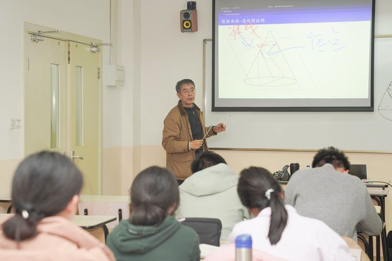 (朱教授带领学生深入探究圆锥曲线性质与应用)