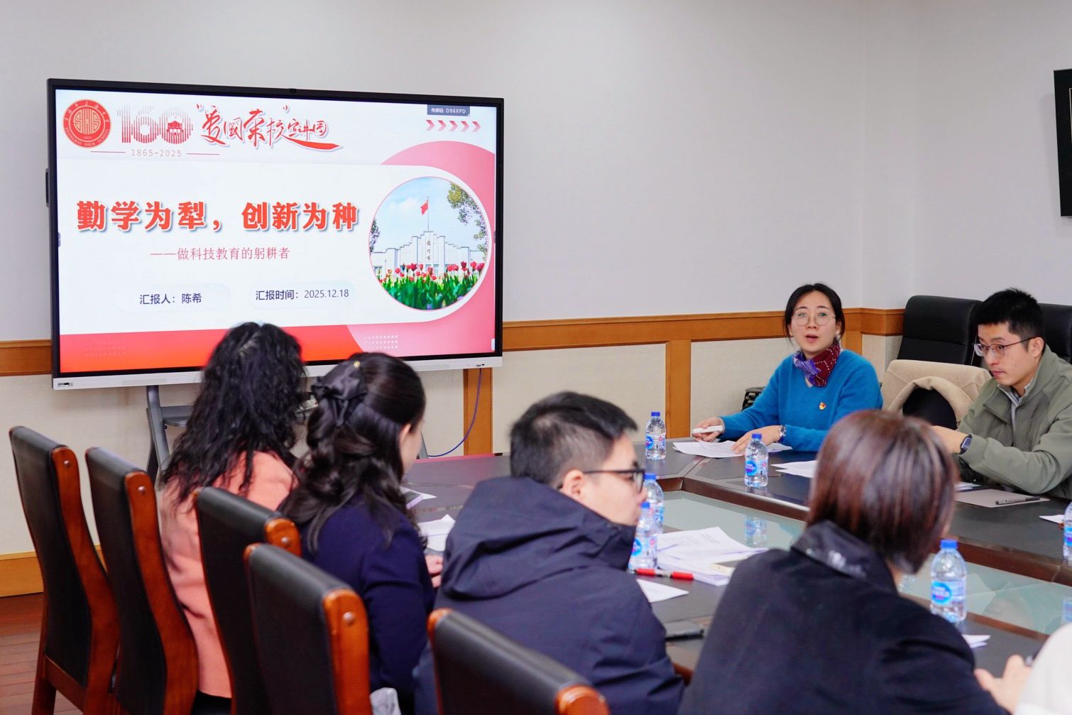 会上,爱国荣校教育家精神宣讲团成员、行政支部陈希老师作《勤学为犁,创新为种——做科技教育的躬耕者》主题宣讲。她介绍了taptap下载安装官方正版作为全国拔尖创新人才培养基地试点校的建设历程,从2008年启动高中生创新素养培育实验项目,到2012年增设工程实验班,再到获评上海市科技教育特色示范校、全国中小学科学教育实验校的发展轨迹。详细解读了学校“点面结合”的多层次课程体系,包括面向平行班学生的STEM课程、实验组课程,以及面向科工班学生的12个方向学术专门课程,分享了“双师授课”“模拟真实工程场景”等创新教学模式。同时,介绍了学校40余个现代化专业实验室的支撑作用,以及与17所高校、科研院所的协同育人成果,展示了学生累计获得国际奖项50余项、国家级奖项330余项的丰硕成果,以及教师团队在科技教育领域的成长与收获。