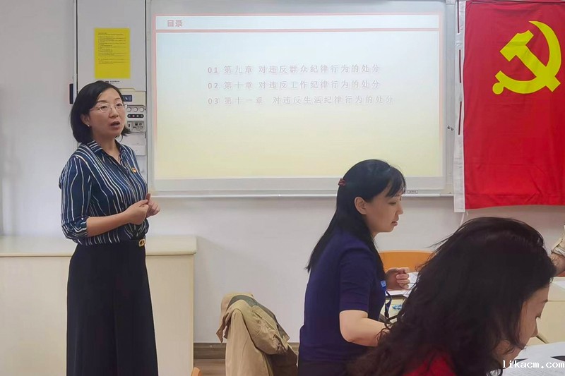 (戴明霞老师带领党员学习《中国共产党纪律处分条例》部分内容)