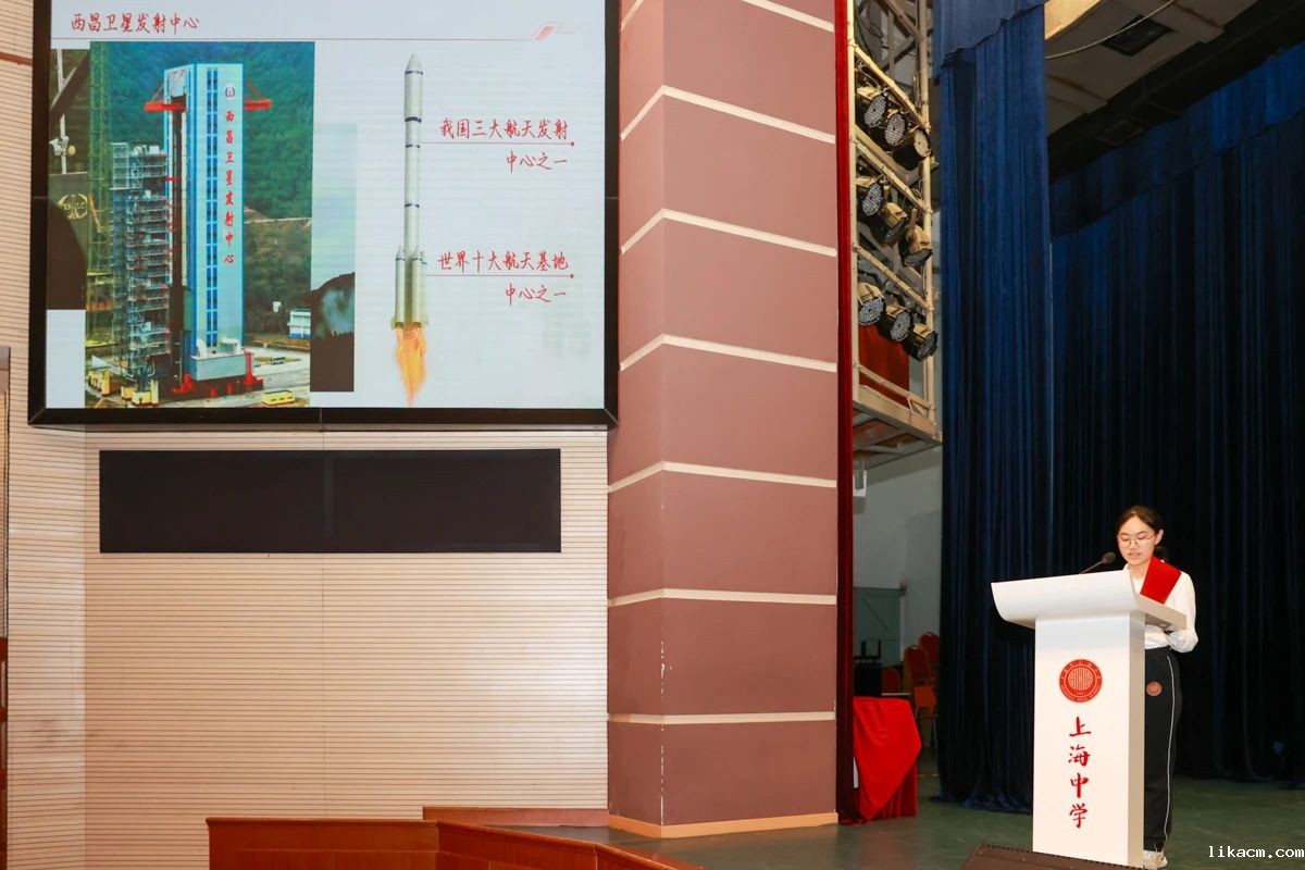 八月中旬,上中学生代表前往西昌卫星发射中心学习考察。26届6班的王一然以《见证航天壮举,致敬幕后英雄》为题发言。她表示,观摩卫星发射时感受到了中国航天事业的磅礴力量,见证航天梦的同时也点燃了同学们以学报国之志。