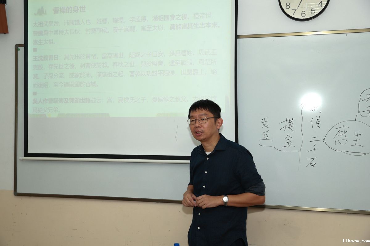 仇副教授辩证地为同学们讲述了曹操其人,他主要贡献为统一了北方,同时休养生息,恢复经济。根据考证,他为汉列侯的后代,生于公卿之家,通过不同史料之间的对比研究,如吕伯奢之死,魏太祖曹操的形象更为立体、丰富,这也启示我们应从不同角度看待事情,多方面和客观性是看待事情的重要因素。《后汉书》、《曹瞒传》和《魏书》中都对于曹操的言行有不同评价和描述,仇副教授详细地分析其中的异同,让同学们进一步了解曹操,对其做人和性格有了更深刻的理解。