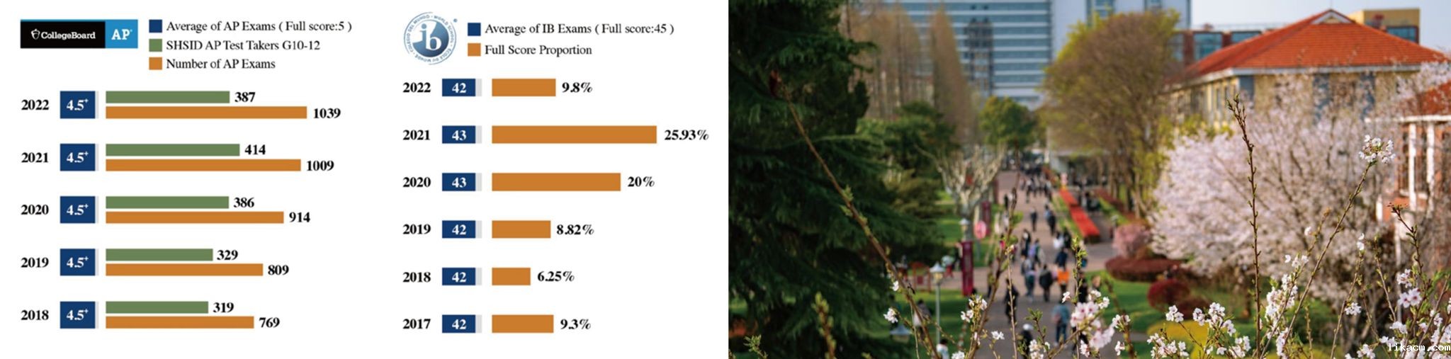 上中国际部注重融通中外,扎根中国办优质国际教育,成为国内乃至国际同类学校的佼佼者。学校先后被授权开设TOEFL\GRE\SAT\P-SAT\PACT\ACT\A-LEVEL考点。国际部主要开设类美国课程、国际文凭IB课程、AP课程和A-Level课程等国际通行课程。学校大学先修AP课程开设21门,IB课程开设29门。AP课程学科平均分4.5以上(满分5分),IBDP课程总分平均分42分以上(满分45分),处于全球领先水平。国际部毕业生超过90%被国外著名大学录取;每年有约50%的国际部毕业生选择前往美国就读,一批学生被哈佛、耶鲁、普林斯顿、麻省理工学院等顶尖名校录取。